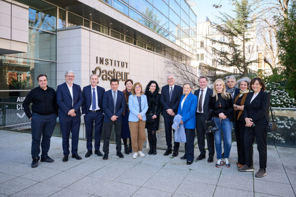 Plusieurs membres de la direction de l’Institut Pasteur ont tenu à célébrer cette distinction dont Patrick Trieu-Cuot, directeur aux affaires scientifiques, Monica Sala, directrice de l’enseignement, Odette Tomescu-Hatto, directrice des affaires internationales, Jean-Michel Molina, directeur médical et Yanis M’Zali, directeur de cabinet de la directrice générale.