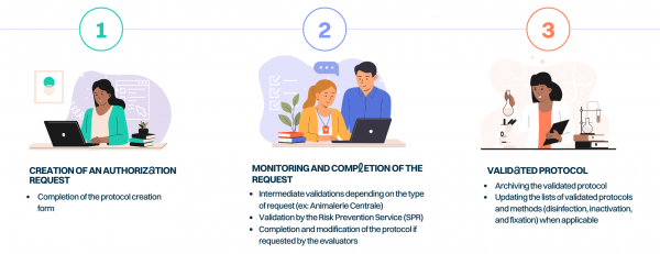 PaRis aims to centralize the submission and tracking of risk protocols submitted by scientists wishing to carry out projects within technological platforms, animal facilities, or containment laboratories. The tool also integrates risk analysis and the safety guidelines required for the implementation of the protocols.