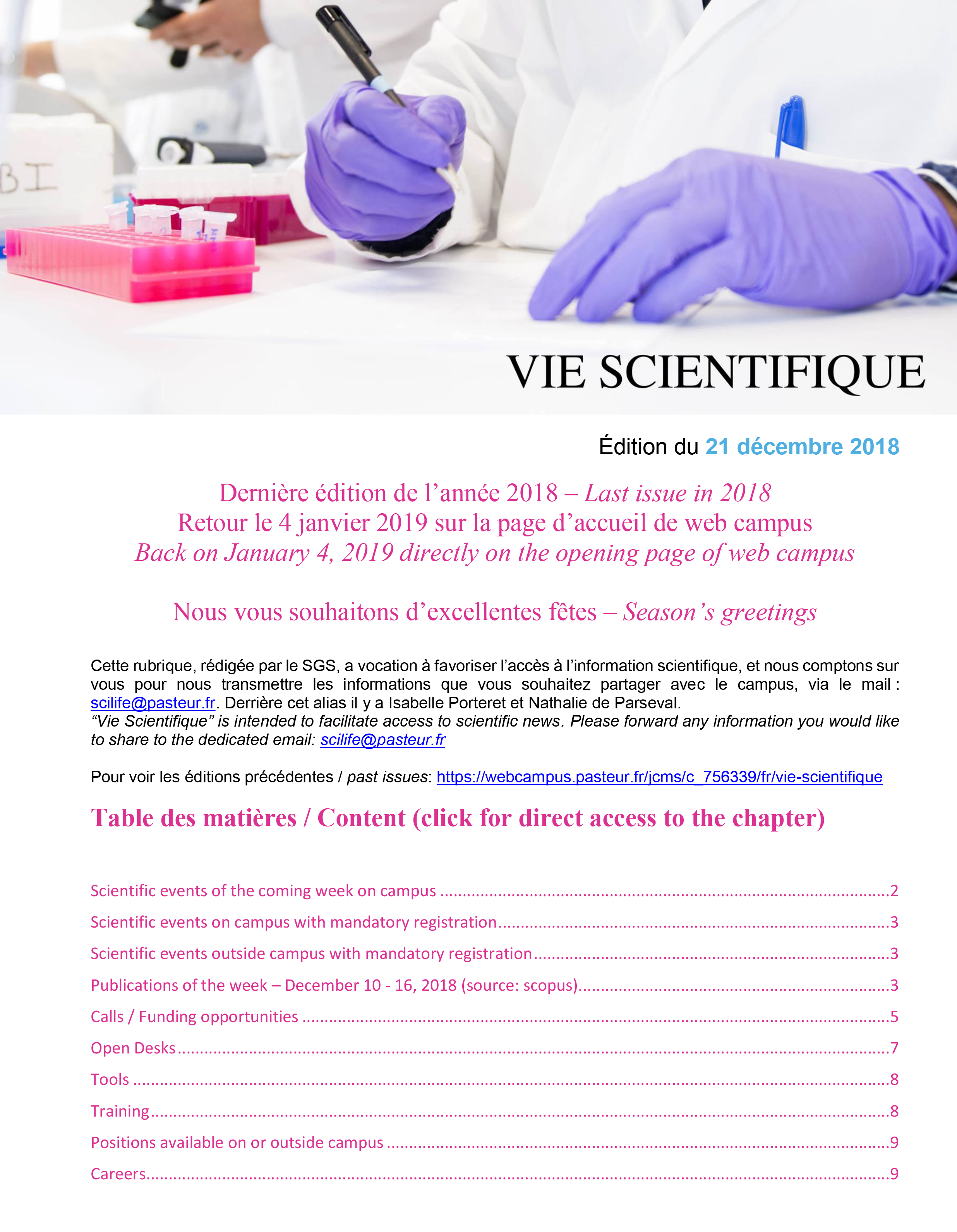 Cette nouvelle rubrique du BIP, intitulée « Vie scientifique » contient les prochains rendez-vous scientifiques de la semaine, les appels à projets et opportunités de financements, des informations sur les outils et bases de données pour vous aider dans les dossiers de financements, les formations proposées sur le campus, les offres de postes ou les événements RH organisés pour accompagner votre carrière.