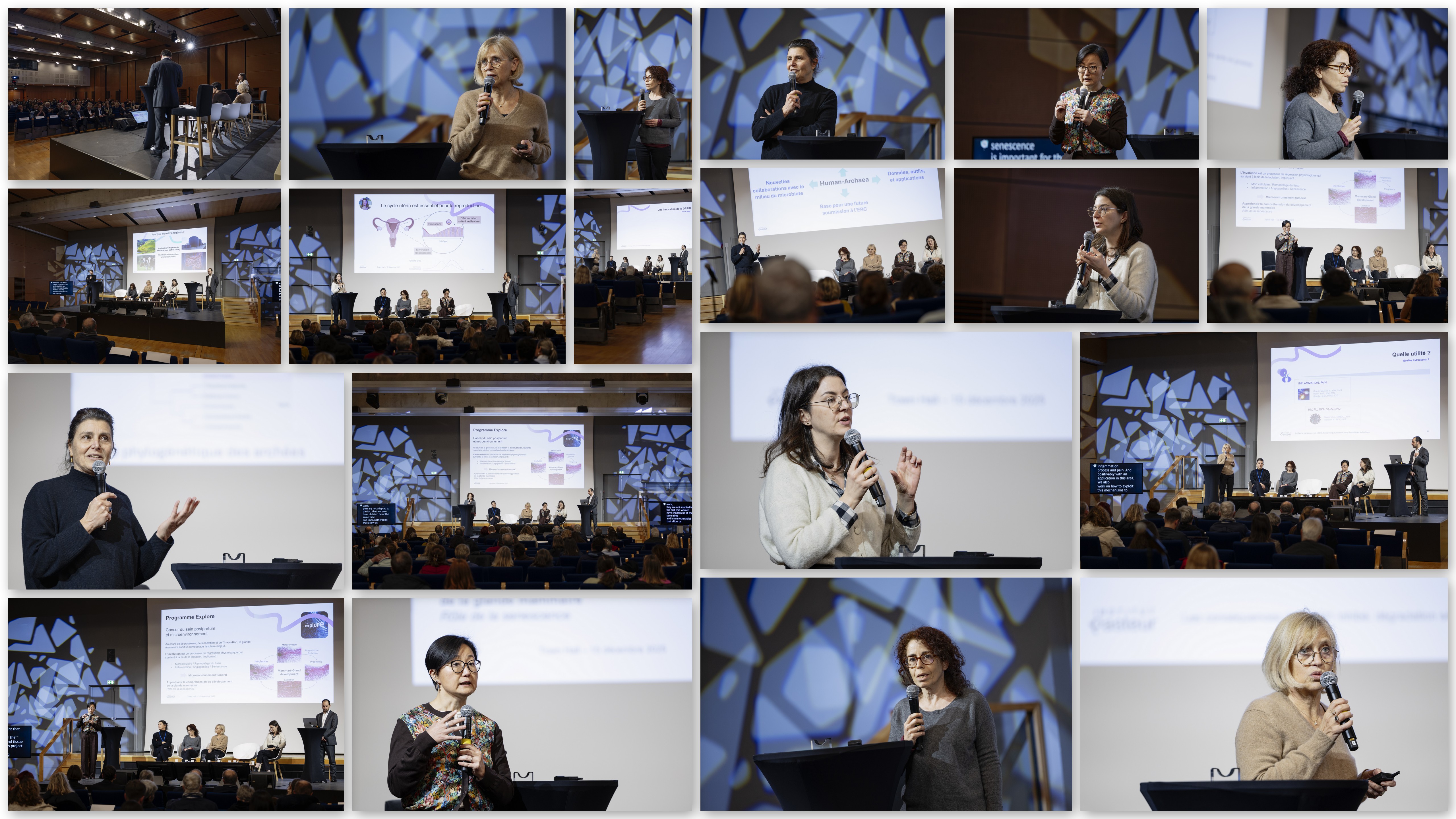 Lucie Peduto, responsable de l’unité Stroma, inflammation et réparation tissulaire, et Han Li, responsable de l’unité Plasticité cellulaire dans les pathologies liées à l’âge, pour présenter leurs travaux respectifs qui intègrent le programme Explore, aux côtés d’Elisa Gomez-Perdiguero, sur le cancer du sein postpartum et microenvironnement.
