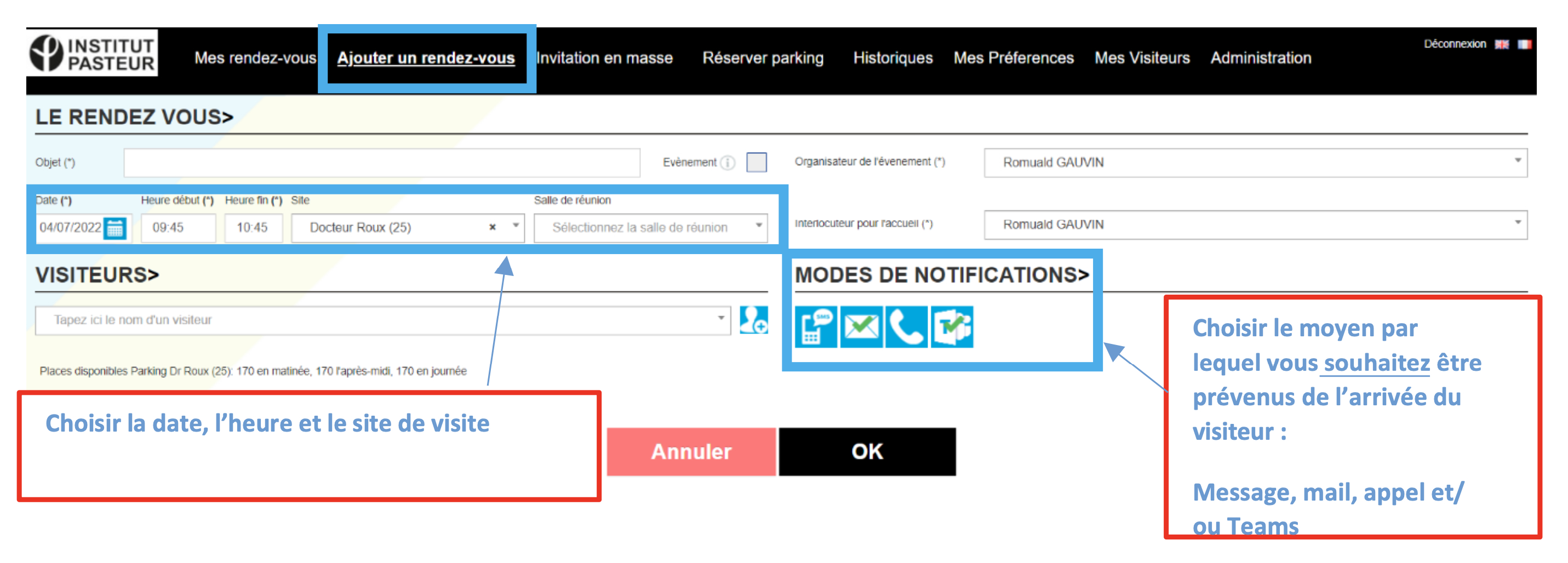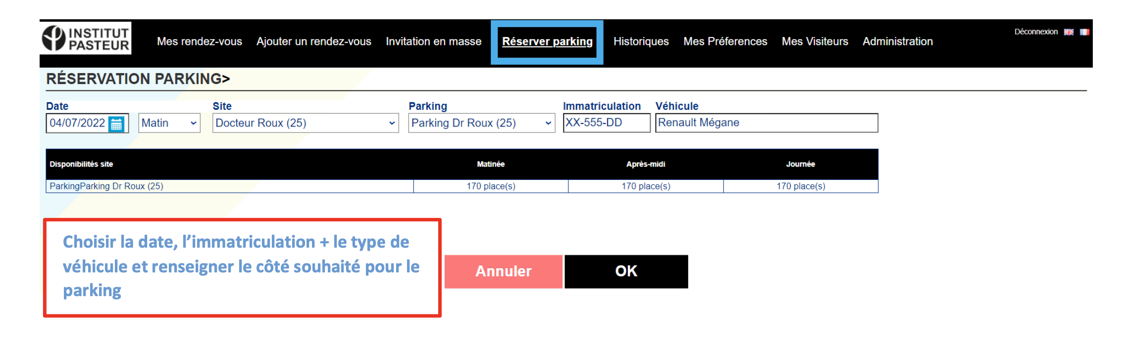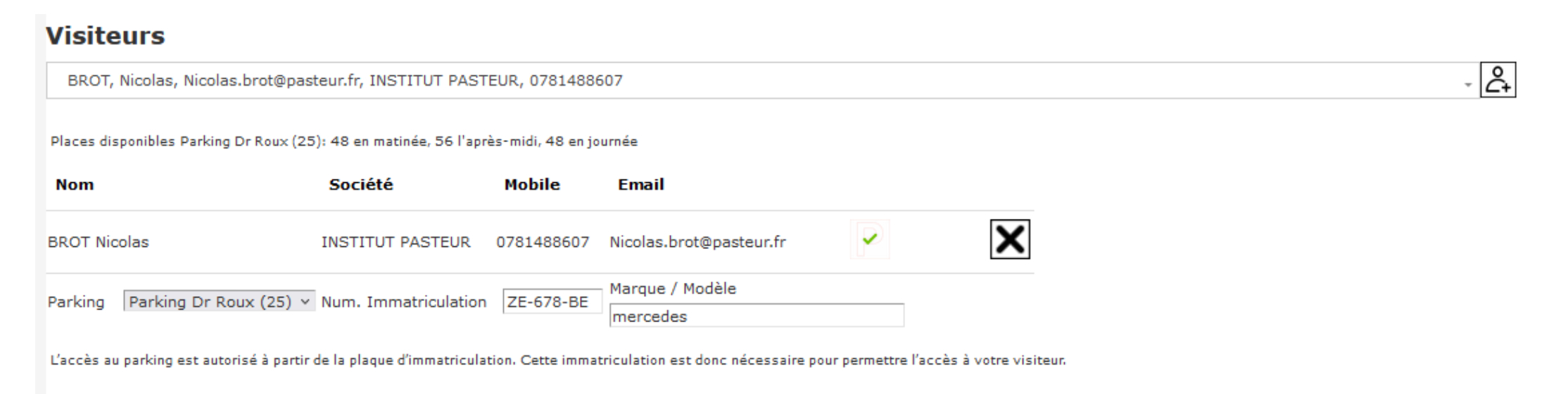 Cependant, lors de la création d’une invitation pour un visiteur, vous pouvez lui réserver une place de stationnement :