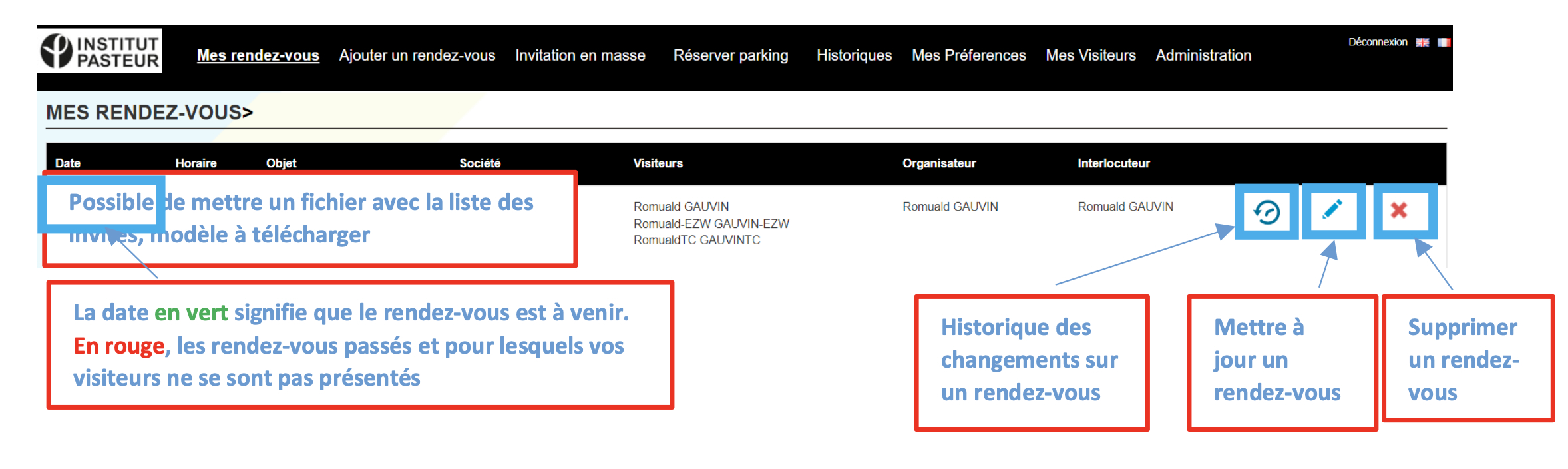 Lors d’une invitation en masse, c’est-à-dire plusieurs invités en même temps pour un événement (par exemple une thèse), comme actuellement, il faudra se rapprocher de accueil@pasteur.fr