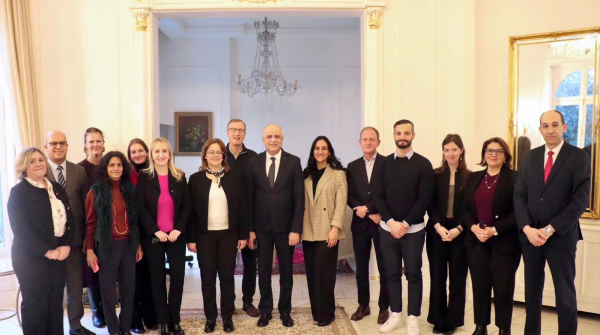 De gauche à droite : Florence Larrous, Mustapha Abid, Perrine Parize, Emilia Cartier, Capucine Schoen, Odette Tomescu-Hatto, Samia Menif, Thierry Lang, Sema Dhia Khaled, Maryem Djebali, Hervé Bourhy, Said Mougari, Anna-Mari Le Gal, Nizar Chakroun