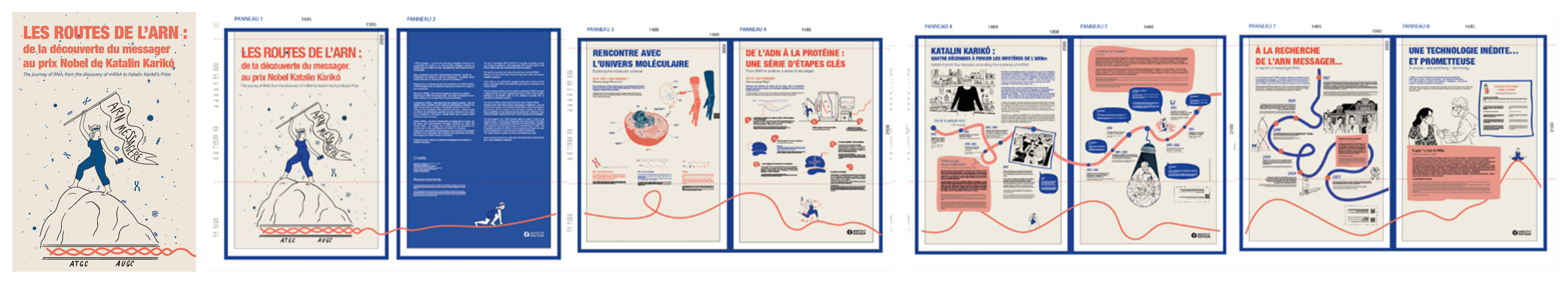 Cette exposition, réalisée en collaboration avec l’artiste Céleste Gangolphe, retrace l'histoire de l'ARN messager depuis les découvertes fondamentales en biologie moléculaire jusqu'aux applications révolutionnaires en médecine moderne.