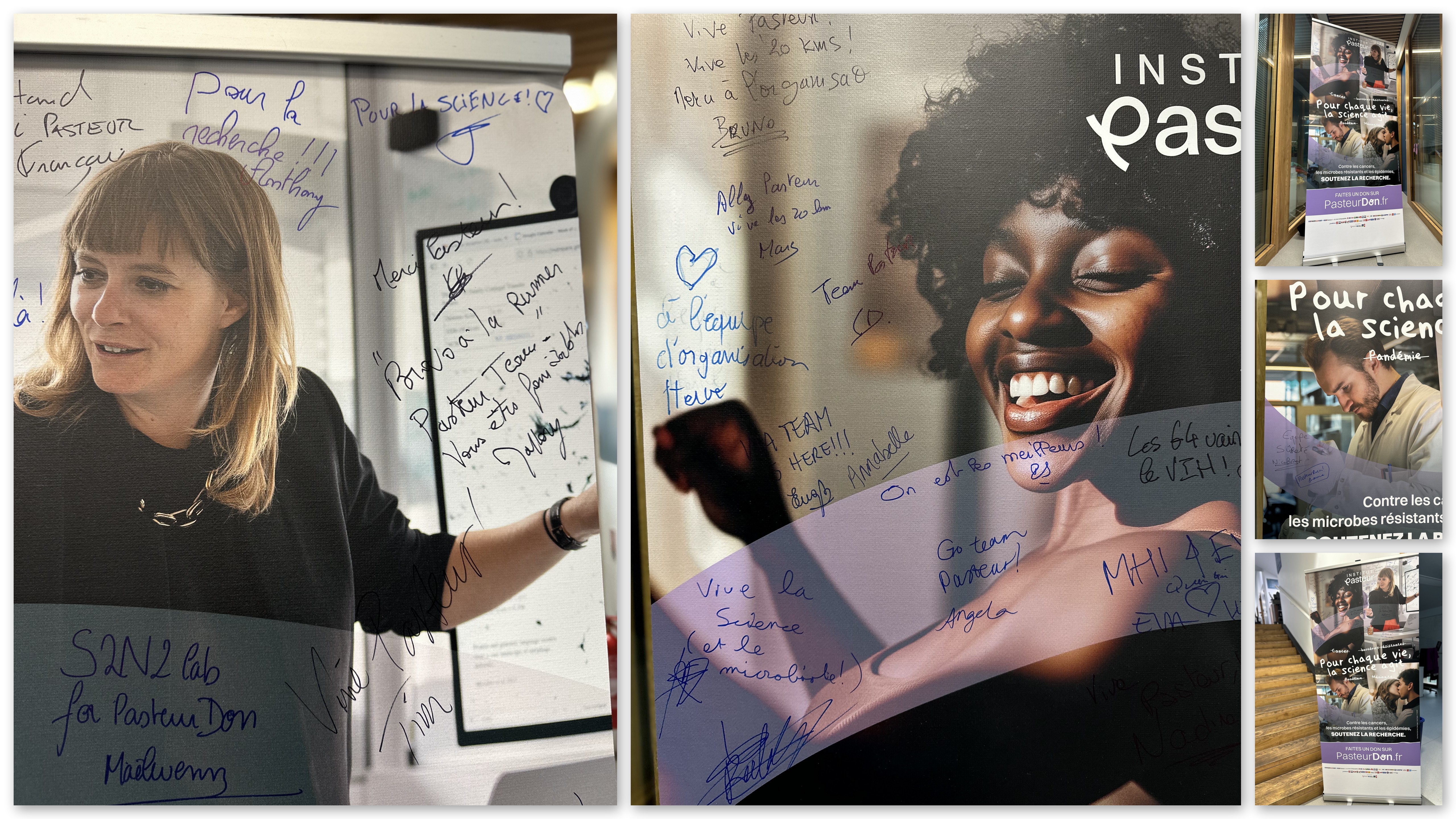 À l’arrivée et de retour sur le stand de l’Institut Pasteur : sourires, partage et convivialité ont rassemblé les coureurs le temps de prendre la pause au soleil pour quelques clichés photos, de se ravitailler mais aussi d’inscrire son nom, sur un kakémono, pour donner un écho fort à l’appel du Pasteurdon : soutenir la recherche, défendre la science !