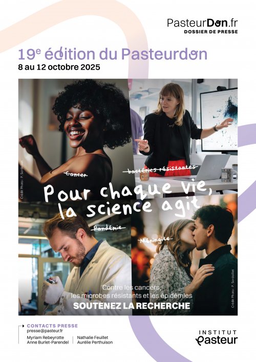 Chaque année, le dossier de presse du Pasteurdon permet de réunir en un document unique dédié aux journalistes tous les éléments constitutifs du rendez-vous à venir. Cette démarche permet de sensibiliser toujours plus la communauté journalistique sur la recherche et ses enjeux de santé et de mettre en avant des travaux scientifiques pasteuriens en résonnance avec les engagements de l’Institut Pasteur. C’est également l’occasion de rappeler l’importance du financement de la recherche et du besoin de la générosité du public.