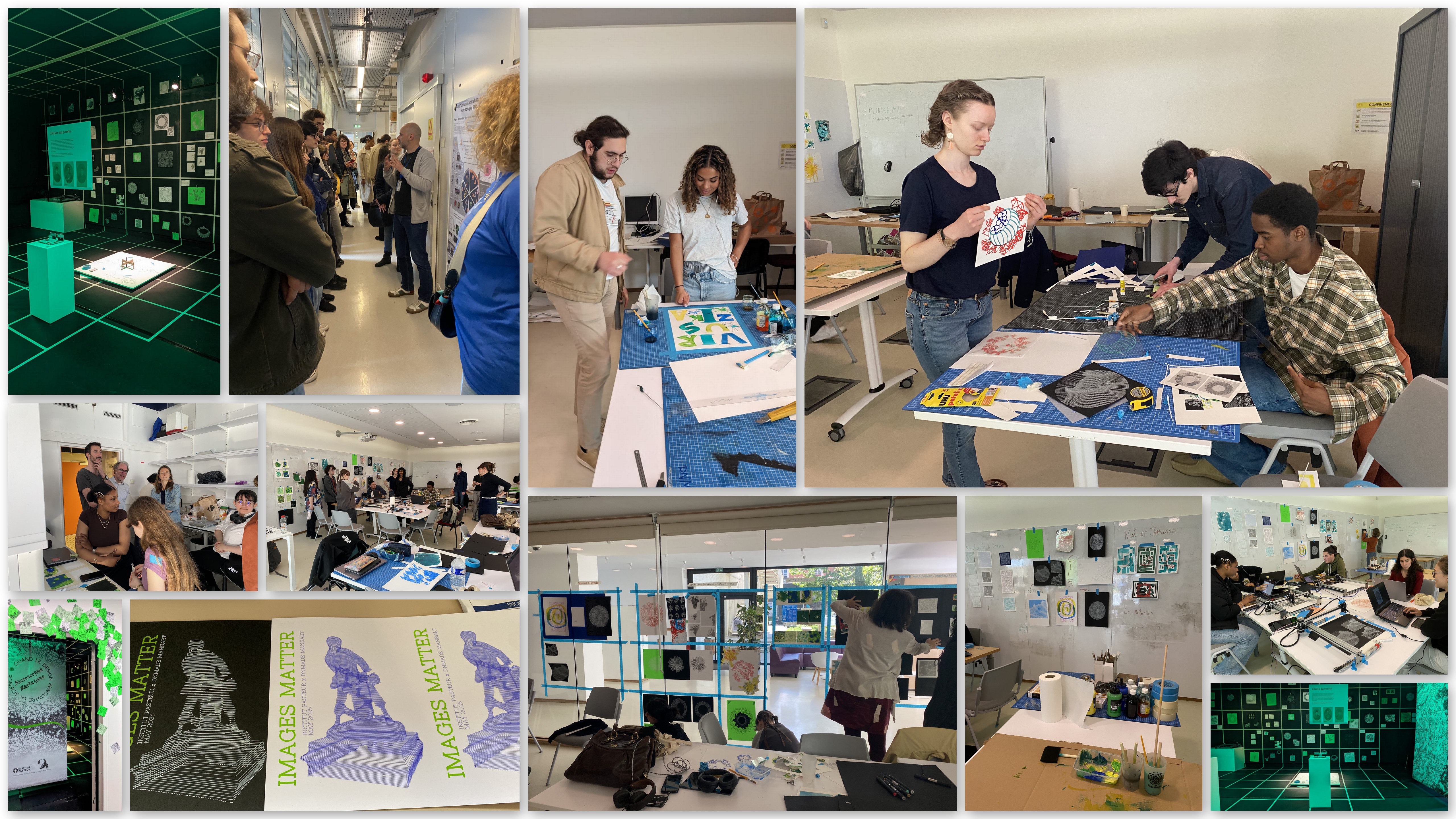 Durant une semaine en 2024, l’équipe du musée, notamment Emma Leprêtre, a accueilli 12 étudiants pour mettre en scène les collections du musée de l’Institut Pasteur. Un an plus tard, Timothée Bruel, chercheur dans l’unité Virus et immunité, et Elric Esposito, ingénieur de recherche au sein de la plateforme de Bioimagerie photonique, ont renouvelé l’expérience en accueillant la nouvelle promotion composée de 19 étudiants pour une semaine d’immersion et de création sur le campus afin d’explorer les potentialités matérielles de la fabrication des images scientifiques.